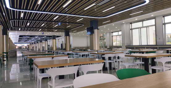改造后,餐厅内环境明亮、舒适、温馨、文化主题鲜明,餐桌椅全部换新,空调全覆盖,集就餐、学习、休闲、活动功能于一体,使得全校师生有更好的就餐环境。后厨增加摄像头,实现“明厨亮灶”智能监管新模式;更换油烟管道、升级排风系统和油烟净化系统,确保排烟设施安全运行。后厨功能间设置更趋合理,流程更规范,进一步保障bat365师生的饮食安全,切实保证每一位师生的身体健康。