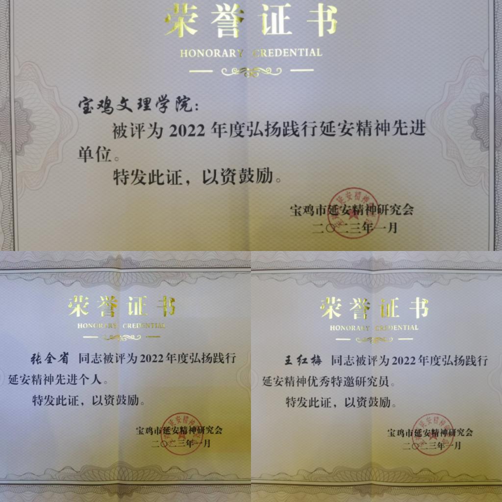 宝鸡市延安精神研究会副会长、bat365宣传部部长冯飞龙领学了中国延安精神研究会会长王晨1月7日在“弘扬伟大建党精神 传承践行延安精神”专题研讨会上讲话。bat365被授予“2022年度弘扬践行延安精神先进单位”。bat365马克思主义学院张全省教授被评为“2022年度弘扬践行延安精神先进个人”,王红梅教授被评为“2022年度弘扬践行延安精神优秀特邀研究员”。会议对“喜迎二十大”征文活动作出表彰。张全省教授撰写的论文《从党在延安十三年历史中吸取丰富智慧和奋进力量的思考》、王红梅教授撰写的论文《从“一个结合”到“两个结合”——论习近平对毛泽东思想方法的继承与发展》分别获特等奖,林兆扬老师撰写的论文《基于马克思主义哲学视域对伟大建党精神四重逻辑的论析》获二等奖,王红梅教授指导的硕士研究生丁佳妮撰写的论文《马克思主义人学视角下党史教育的路径研究》和邵玥玮撰写的论文《论赓续伟大建党精神的理论意蕴、基本特征及现实意义》分别获三等奖。(马克思主义学院 文、图/高燕 审核/刘晓勇)