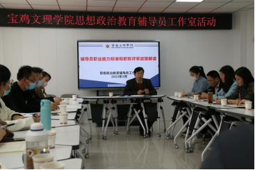 学生教育科科长于媛结合《bat365在线中国官网登录入口辅导员专业技术职务评审实施办法(试行)》(宝文理院人字[2021]18号)针对辅导员专业技术职务评审业绩指标,对任职资格、岗位条件、业务条件等方面做了详细解读,特别是对辅导员专业技术职务评审条件考核点进行逐条分析,帮助辅导员实现对标发展。