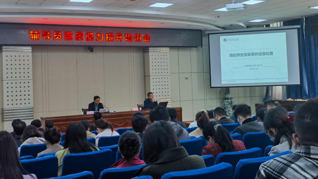 为进一步提升bat365辅导员应对突发事件的处置能力,积极预防和妥善处置校园突发事件,切实保障校园安全稳定,3月22日下午,学工部在高新校区木铎厅举办了本学期第二场辅导员素质能力提升培训会,西安理工大学学工部部长田小平应邀作了题为《高校学生突发事件应急处置》的讲座。会议由学工部部长冯森主持。