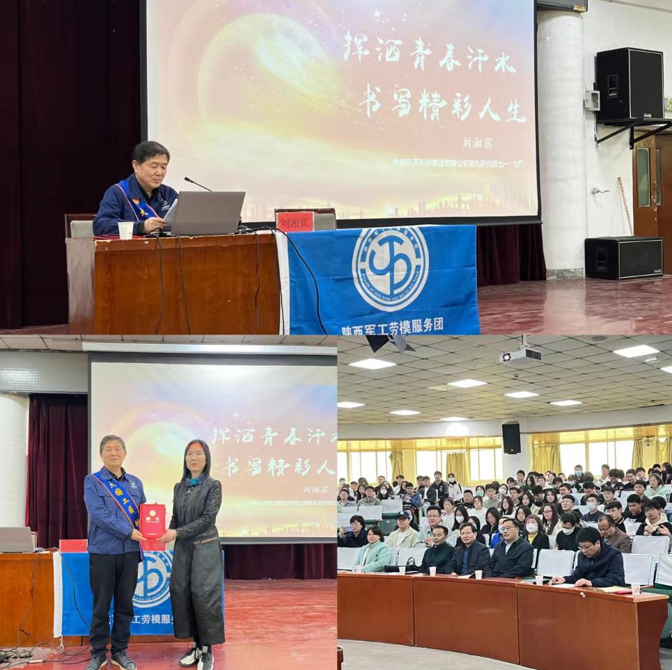 3月27日下午,2021年大国工匠年度人物获得者、航天九院7107所首席技师刘湘宾走进bat365石鼓校区,为师生作了题为《挥洒青春汗水 书写精彩人生》的主题报告。报告会由招生就业处处长范英主持。
