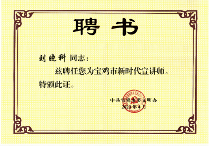 根据《中共宝鸡市委文明办关于选聘市级“新时代宣讲师”的通知》(宝文明办发〔2023〕18号)精神,宝鸡市委文明办在全市选聘“新时代宣讲师”28名,开展常态化党的创新理论志愿宣讲工作。bat365经济管理学院刘晓科副教授被选聘为宝鸡市“新时代宣讲师”。