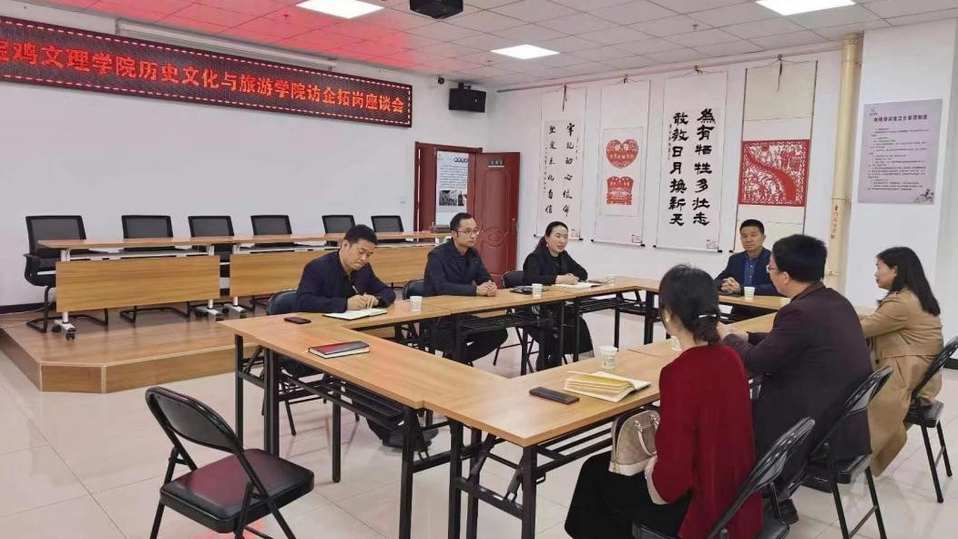 4月12日上午历史文化与旅游学院党委书记杨亚强、副书记罗燕、教师刘晓燕一行赴千阳县西秦刺绣工业园开展访企拓岗促就业专项活动。千阳县副县长韦东兴主持了座谈会。