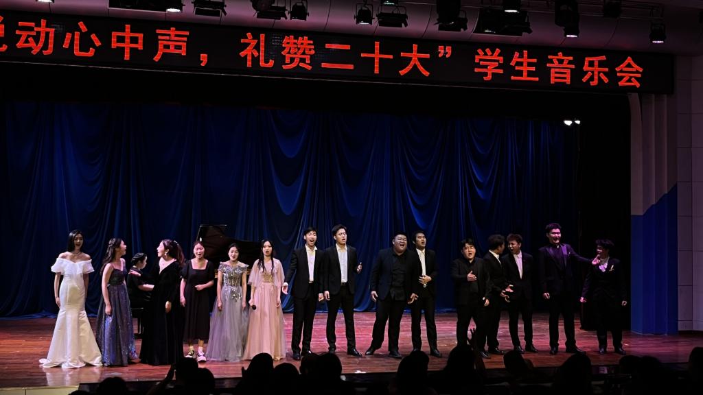 音乐学院认真学习贯彻党的二十大精神,充分发挥专业优势,践行初心使命,厚植爱国爱校情怀,以美育培根铸魂,推动党的二十大的精神入脑入心。同学们立志做有理想、敢担当、能吃苦、肯奋斗的新时代好青年,让青春在全面建设社会主义现代化国家的火热实践中绽放绚丽之花。(音乐学院 文、图/牛雪瑶 审核/魏安石)