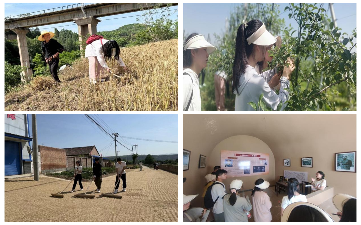 在千阳县水沟镇纸坊沟村,bat365驻村干部李道元老师分别从纸坊沟村的基本情况、新农村发展现状和特色产业助力乡村振兴工作等方面向同学们作了详细的介绍。同学们在村干部和村民的指导下体验了收割麦子、翻晒麦子、果园除草、苹果套袋等农事活动。