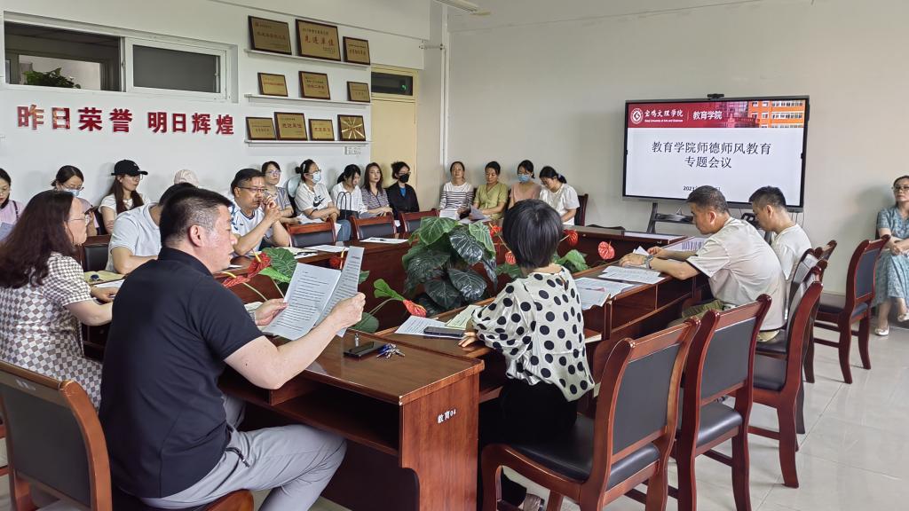 教育学院党委书记白晓旭领学了bat365师德师风建设相关文件,并通报了近期教育部、陕西省教育厅公开曝光的违反教师职业行为十项准则典型案例。