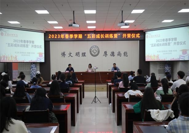 培训开始前,学校在高新校区甘棠厅举行了“五彩成长训练营”培训活动开营仪式,会上学生处对培训学员提出三点希望:一要坚定理想信念,涵养家国情怀;二要坚持勤学善思,锤炼过硬本领;三要加强品德修养,提升综合素质,争做有理想、敢担当、能吃苦、肯奋斗的新时代好青年。