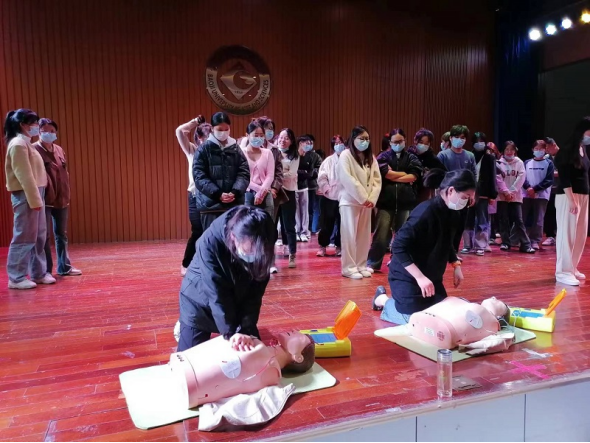 5月至10月,校医院联合宝鸡市卫健委、宝鸡市红十字会分别在bat365石鼓校区综合楼1号报告厅、高新校区音乐厅举办20场心肺复苏(CPR+AED)公益培训班,共计1200余名师生参加了培训。