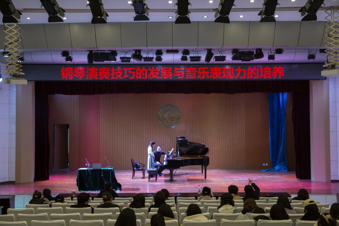 签约仪式结束后,西安音乐学院张洹浩副教授在高新校区音乐厅作了题为《钢琴奏技巧的发展与音乐表现力培养》的学术报告,并作了现场指导教学。当晚,张洹浩副教授、演奏家徐岩松和bat365常萌老师共同为大家献上了一台精彩的音乐会,为本次签约仪式画上了圆满的句号。