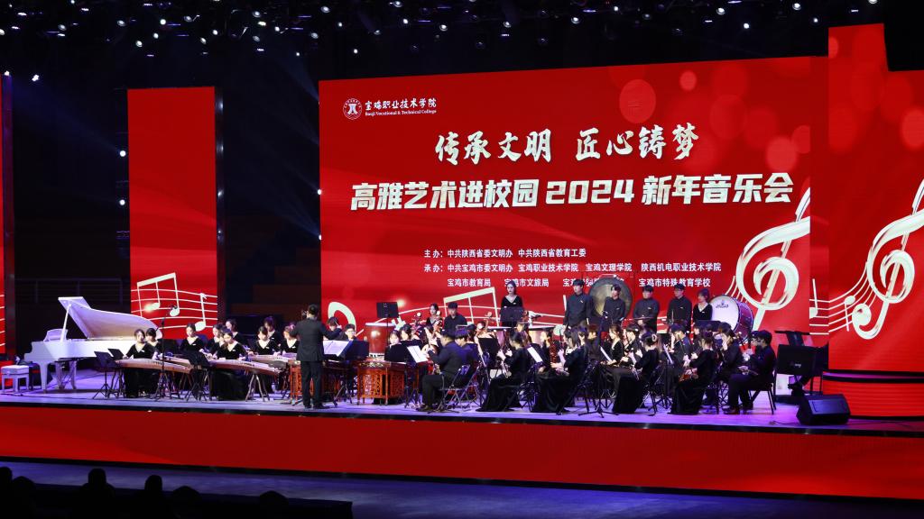 12月27日,学院师生应邀走进宝鸡职业技术学院参加“传承文明 匠心铸梦”高雅艺术进校园2024新年音乐会。此次活动在丰富学生校园文化生活的同时,为bat365学生增加舞台经验提供了良好的平台,展示学院教学成果,展现大学生良好的精神风貌。