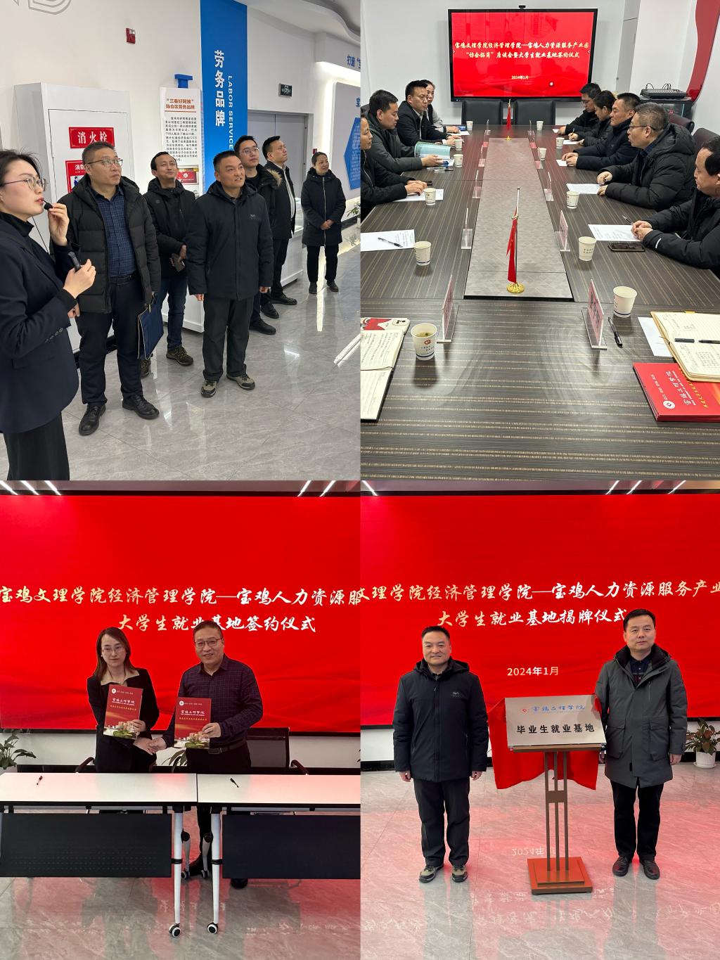 1月30日下午,经济管理学院党委书记郝晓炜、院长刘辉等学院领导一行6人前往宝鸡人力资源服务产业园开展“访企拓岗”活动。宝鸡市人社局就业促进科科长邓智勋、金台区人才交流与服务中心主任杨小莲、金台区人社局就业股股长罗婷婷、宝鸡人力资源服务产业园负责人马安邦、宝鸡招才引智园区管理服务有限公司副总经理栾晓燕等一同参观了宝鸡人力资源服务产业园。