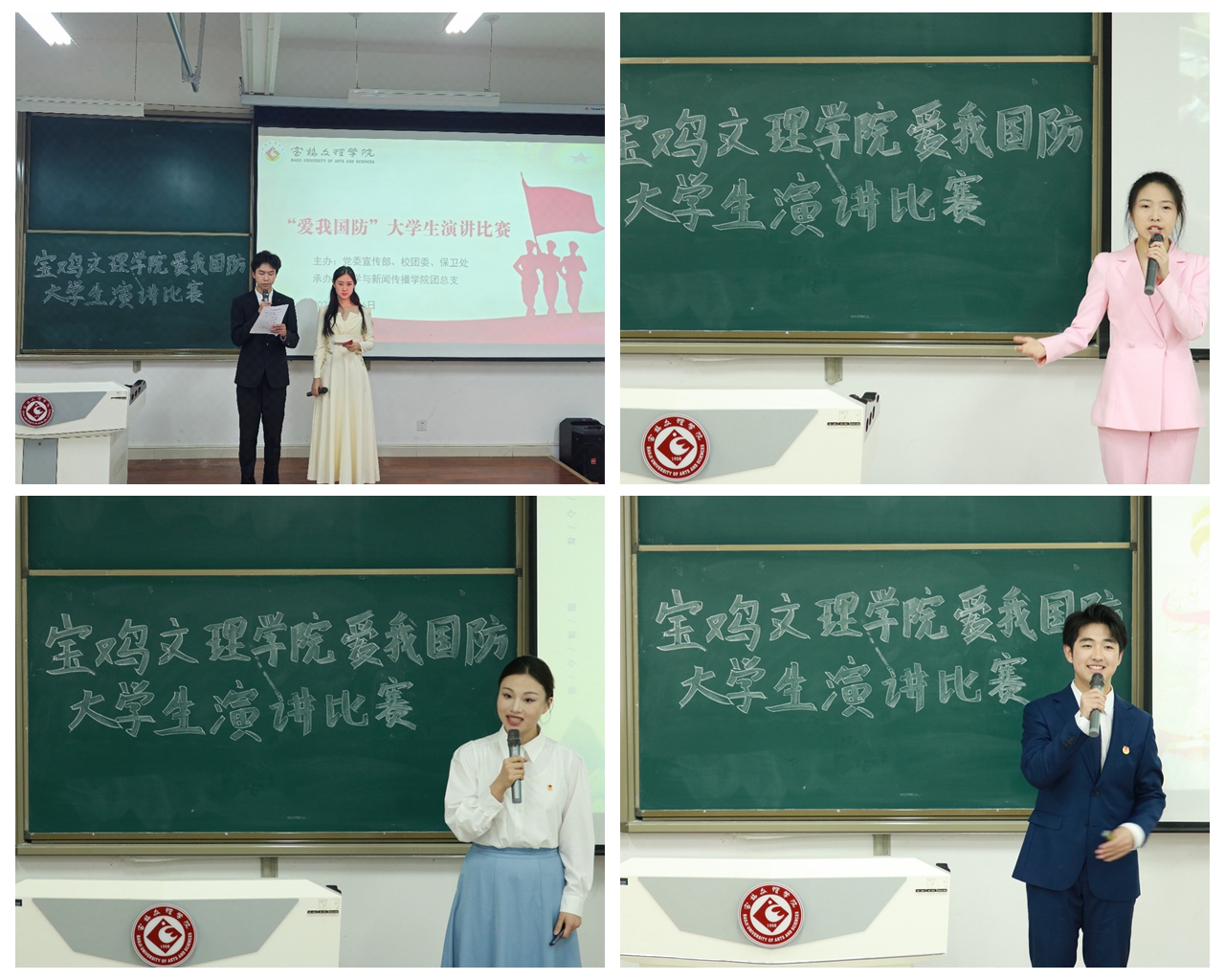 本次比赛由党委宣传部、校团委、武装部主办,文学与新闻传播学院团总支承办。经过初赛选拔,共有11组选手进入校级决赛。选手们围绕“爱我国防”主题,从家国情怀、时代担当、青年责任等角度,用鲜活的事例和感人的故事,诠释了国防教育对于个人成长和国家发展的重要性,彰显了宝文理学子的青春风貌和责任担当。经过评审,文学与新闻传播学院播音与主持艺术专业学生万昊樾、王晨宇荣获一等奖并推荐参加省级比赛。决赛邀请校团委书记郭理想、党委宣传部副部长崔小丽、文学与新闻传播学院播音与主持艺术专业教师何艳萍、高静担任评委。何艳萍作了精彩点评。