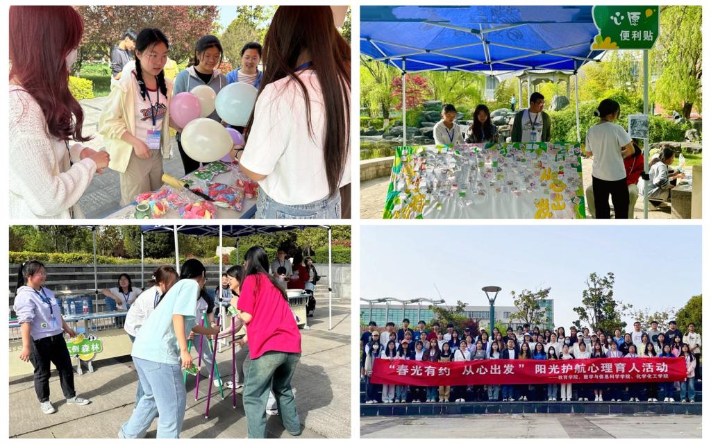 4月14日下午,教育学院、数学与信息科学学院、化学化工学院在高新校区四为园联合开展“春光有约 从心出发”阳光护航心理育人活动,全校400余名学生参加了活动。