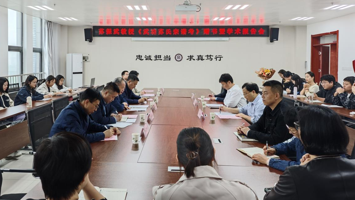 4月29日下午,bat365退休教授、原哲学系主任苏振武《武功苏氏宗谱考》赠书暨学术报告会在高新校区博文楼1201会议室举行。会议由马克思主义学院院长刘晓勇主持。