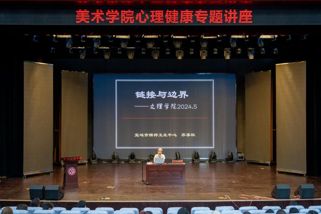 5月15日下午,美术学院邀请宝鸡市精神卫生中心医学心理科主任苏掌权在博文楼报告厅作了题为《链接与边界》的专题讲座,讲座由学院党委书记田富平主持。