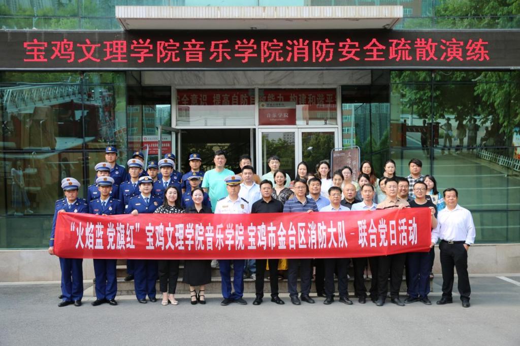 5月15日,音乐学院党委与宝鸡市金台区消防大队联合开展了“火焰蓝 党旗红”党日活动,校党委副书记韩干校参加了活动。