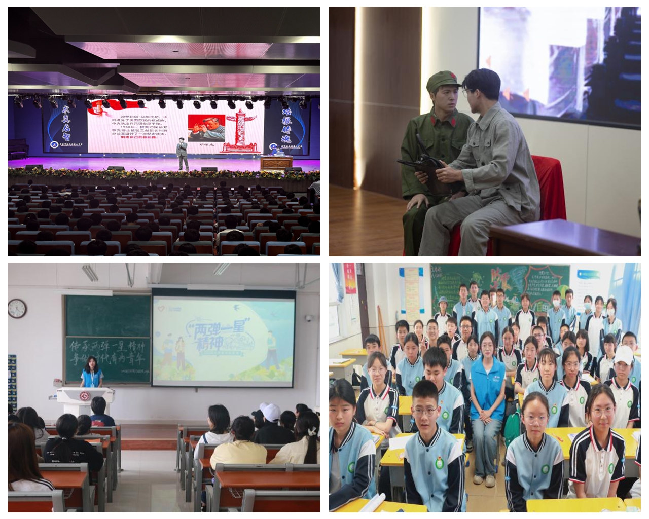 开展实践宣讲,弘扬“两弹一星”精神。在宝鸡市三迪中学宏文校区等地,宣讲团成员围绕2024年全国两会精神和“两弹一星”精神,通过视频展示、实例介绍、话剧表演、知识竞答等方式讲述了老一辈航天科学家们在困难面前不屈不挠、在挑战面前勇于登攀的感人故事。在校内,宣讲团成员通过组织开展主题团日活动,带领青年大学生再次感悟了“两弹一星”精神内涵,鼓励大家牢记“强核报国”历史使命,自觉遵守学术规范,努力奋斗,勇攀高峰。