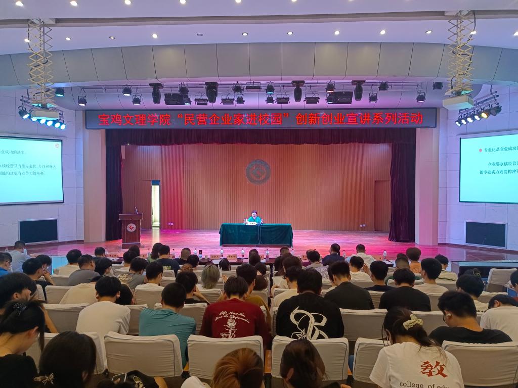胡登卫介绍了出席活动的领导和嘉宾,并对大家的到来表示欢迎。大学生创新创业教育中心主任李建鹏介绍了活动的计划、目的及意义。宝鸡市民营企业协会党委书记、执行会长刘一良表示,希望通过“民营企业家进校园”创新创业宣讲系列活动能够加强高校与企业的联系,帮助大学生了解企业创新创业现状,鼓励大学生积极投身创新创业实践。