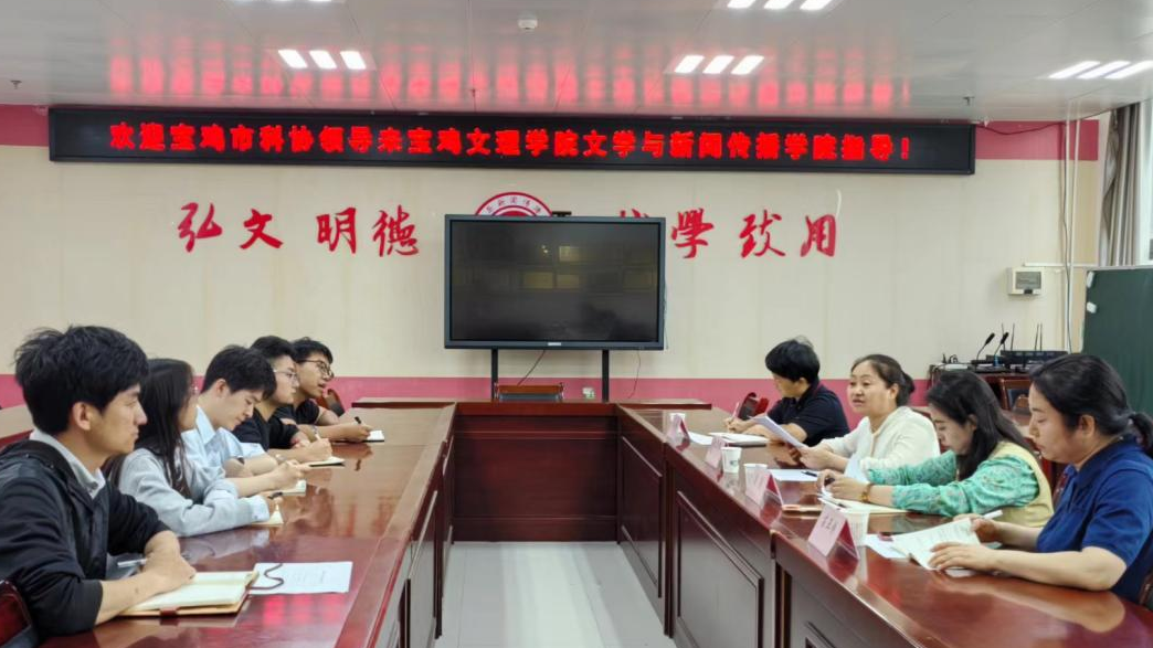 6月6日下午,宝鸡市科协党组成员、副主席张碧燕,科普部部长张钰来bat365文学与新闻传播学院调研指导陕西省公民科学素质大赛参赛工作。调研座谈会在高新校区博文楼1401会议室召开。