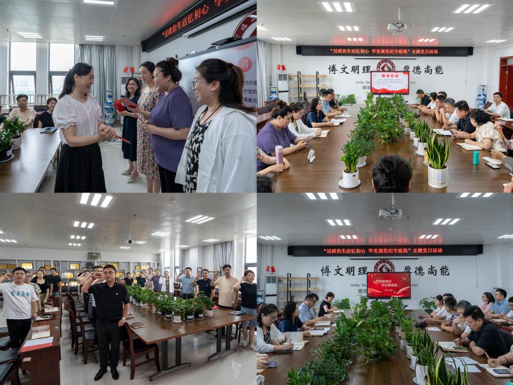 6月26日下午,美术学院党委通过赠送一份专属礼物、重温一遍入党誓词、分享一段在党感悟、开展一次警示教育、讲授一堂纪律党课等“五个一”形式,开展“过政治生日忆初心 学党规党纪守底线”主题党日活动,活动由学院党委书记崔小丽主持。