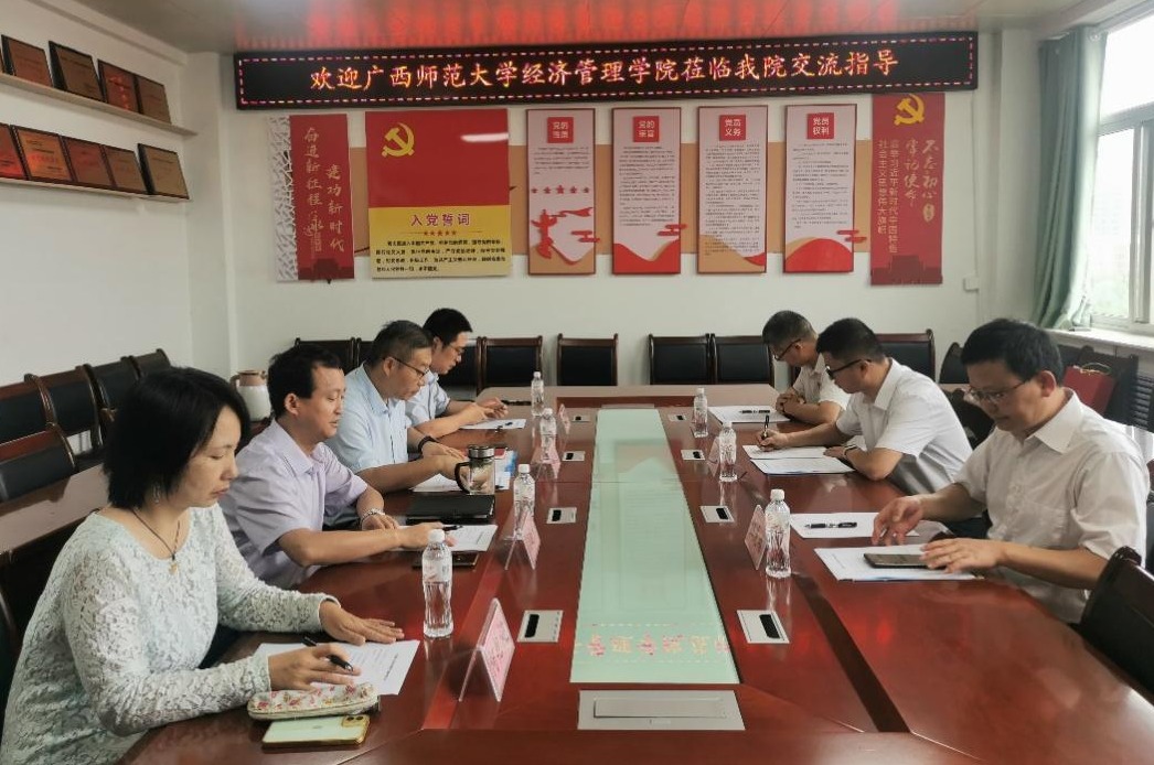 7月16日上午,广西师范大学经济管理学院院长张海丰、副院长伍先福、院长助理李强谊一行3人来bat365经济管理学院调研。经济管理学院院长刘辉主持座谈会。