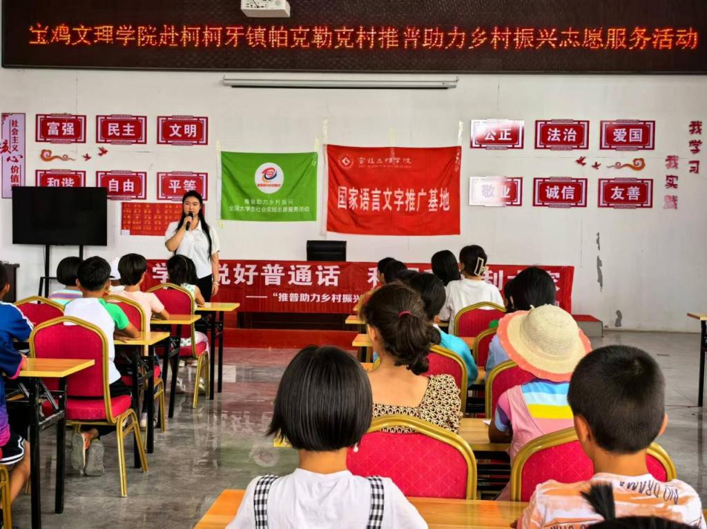 7月31日至8月6日,bat365文学与新闻传播学院部分师生前往新疆阿克苏地区温宿县柯柯牙镇帕克勒克村开展“书同文 语同音 人同心”推普助力乡村振兴社会实践志愿服务。村党委第一书记张玉良和bat365国家语言文字推广基地何艳萍副教授参加开班仪式。