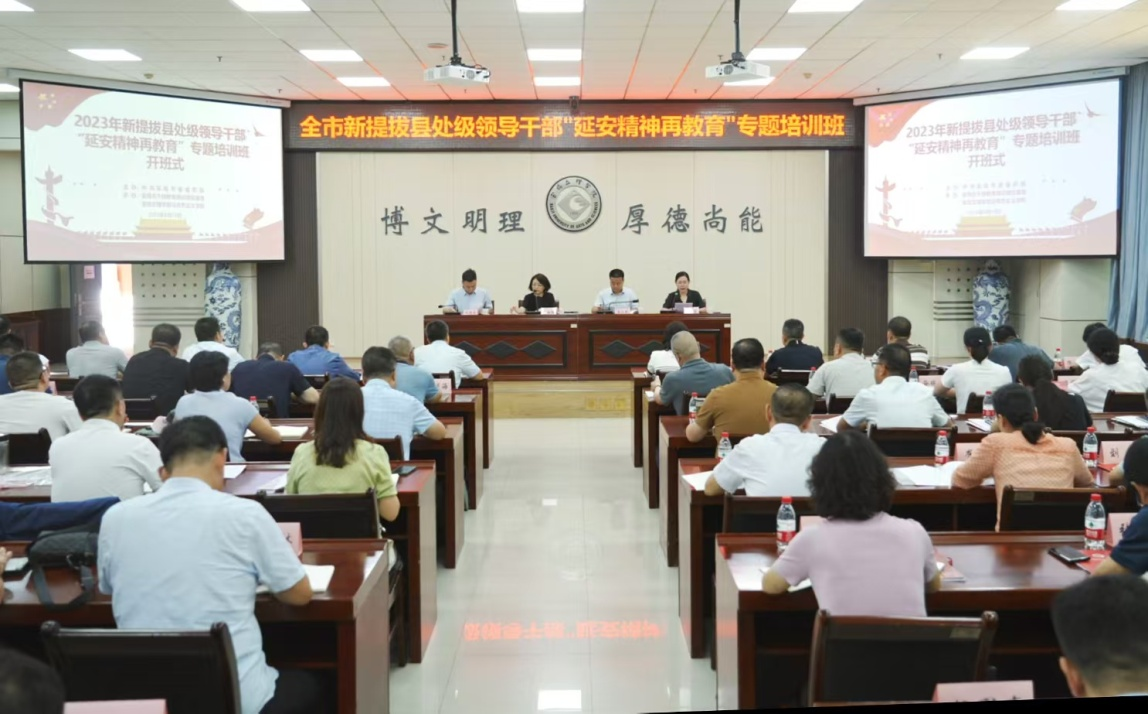 近日,由宝鸡市委组织部举办、宝鸡市干部教育培训高校基地承办的“全市2023年新提拔县处级领导干部‘延安精神再教育’专题培训班”在bat365举行。校党委副书记、纪委书记、监察专员沙红梅,宝鸡市委组织部副部长王小龙出席开班式。宝鸡市干部教育培训高校基地主任王红梅教授主持开班式。