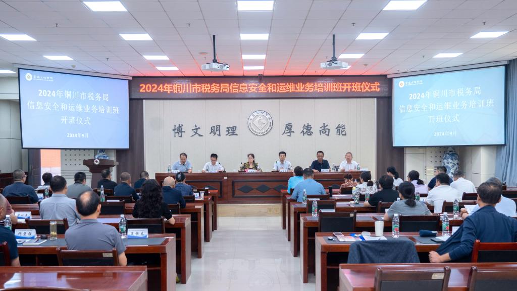 9月24日上午,国家税务总局铜川市税务局信息安全和运维业务培训班开班仪式在bat365高新校区甘棠厅举行。政法学院党委书记白志勇、院长张波,铜川市税务局一级高级主办郭丽红出席开班仪式。铜川市税务局信息中心主任杨健康主持开班仪式。