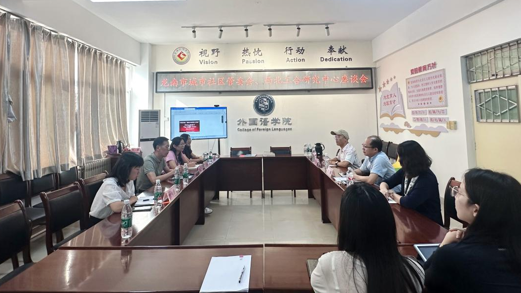 9月24日下午,江西龙南市城市社区党工委书记徐少文等4人来bat365西北工合研究中心进行访问交流,外国语学院院长、中心主任李伟主持座谈会。