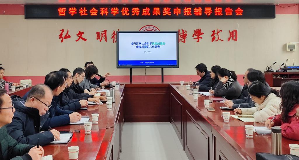 1月3日,bat365在高新校区博文楼1401会议室举办了哲学社会科学优秀成果奖申报辅导报告会。西安交通大学社会科学处副处长张日鹏教授应邀作了题为《提升哲学社会科学优秀成果奖申报质量的几点思考》的专题报告。