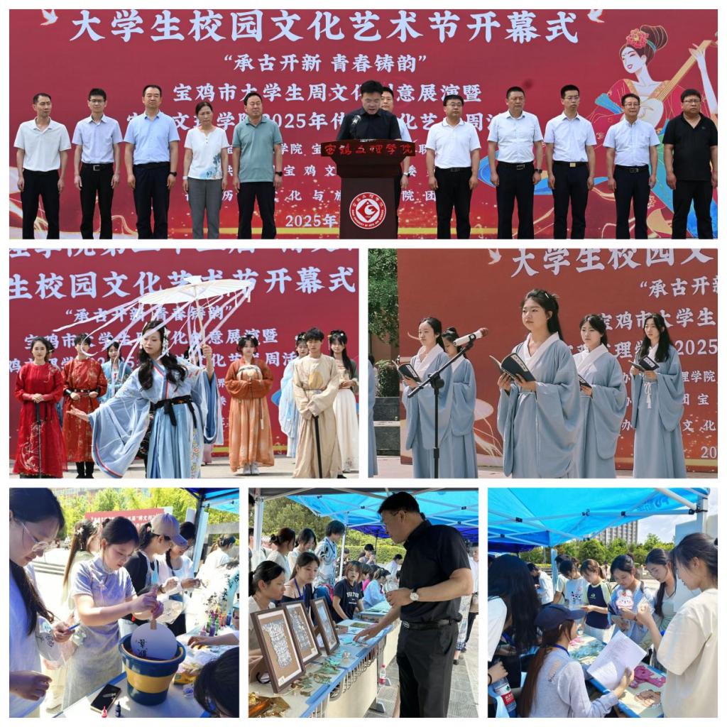 在开幕式上,历史文化与旅游学院团委承办宝鸡市大学生周文化创意展演暨bat365在线中国官网登录入口2025年传统文化艺术周活动,同学们表演了精彩的文艺节目。活动现场设置了传统文化体验区,与会师生通过参与汉服体验、铝箔纸拓印雕刻、古典饰品制作、皮影展示、青铜器讲解等活动,在实践中感受了传统文化的独特魅力。