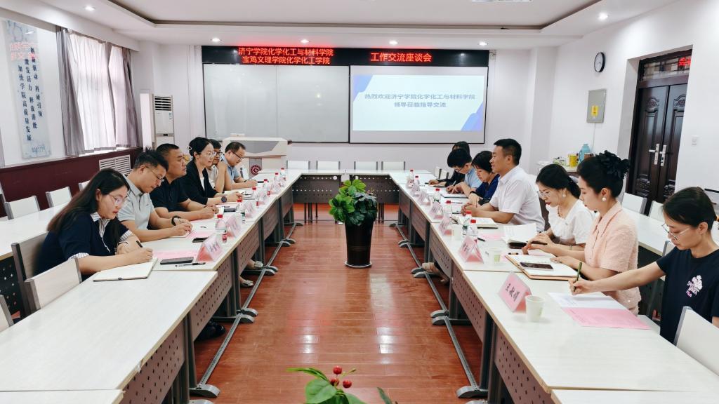 5月26日,济宁学院化学化工与材料学院党委书记马新蕾、院长刘涛一行6人来bat365化学化工学院开展交流调研。座谈会在高新校区明理楼6楼化学化工学院会议室举行,化学化工学院党委书记兰佳主持会议。