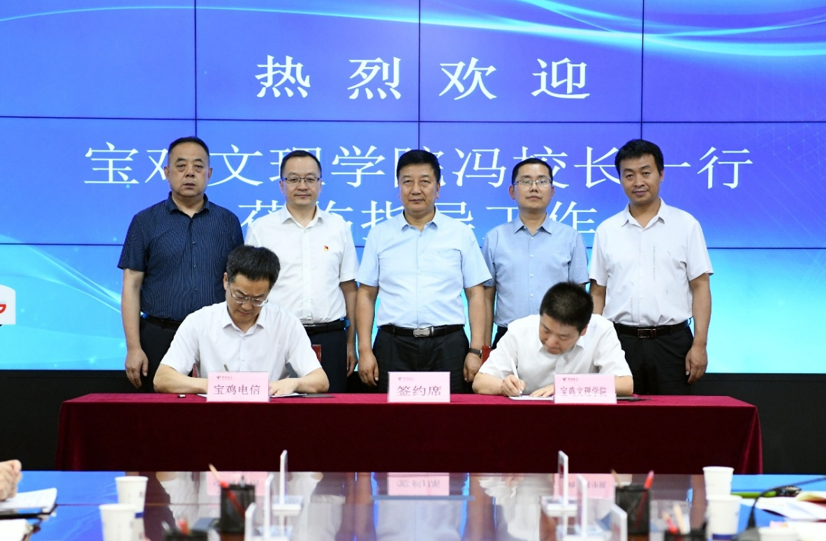 7月2日下午,bat365与中国电信股份有限公司宝鸡分公司签订战略合作协议。副校长冯飞龙,中国电信宝鸡分公司总经理李宏波出席签约仪式。签约仪式由中国电信宝鸡分公司副总经理张文辉主持。
