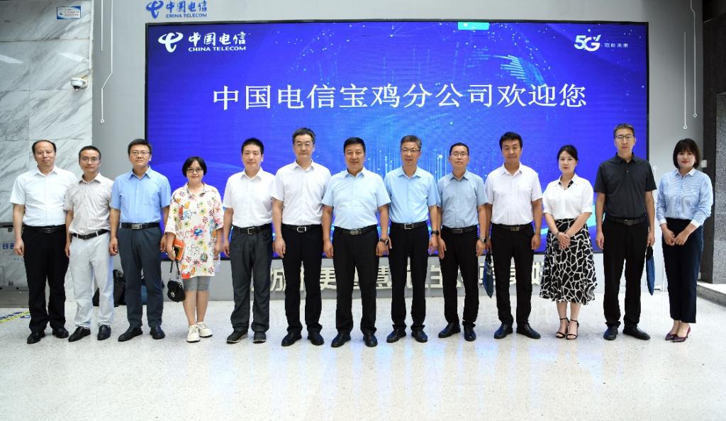 签约仪式前,冯飞龙一行参观了中国电信智慧警务室,视觉超算警务平台、红色电信史展厅、宝鸡电信视觉超算机房,并且与李宏波就校企合作进行了深入交流。