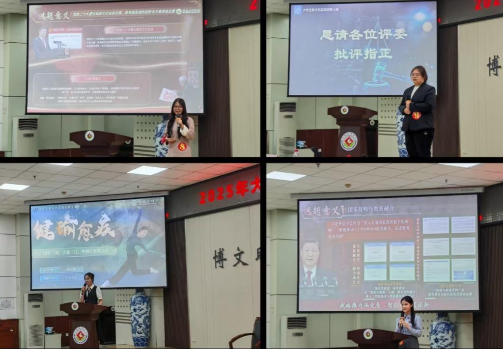 本次比赛由教务处主办、政法与历史学院承办,以“融创赋能实践致新”为主题,比赛设文史哲、经管法、教育、艺术类4个组别。经组委会资格审核和评审专家线上评审,从报名的90余个参赛项目中遴选出15个项目角逐决赛。决赛现场,各参赛团队围绕项目背景、理论研究、实践成果及未来规划等维度进行了全面展示。评审专家从创新性、可行性、社会价值等方面对项目逐一提问打分,并提出优化建议。
