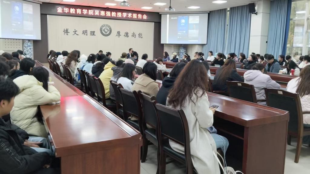 10月31日上午,金华教育学院党委书记吴惠强教授应邀在高新校区甘棠厅,为bat365师生作了题为《与未来教师谈校家社协同育人》的学术报告。报告会由教育学院院长马多秀教授主持。