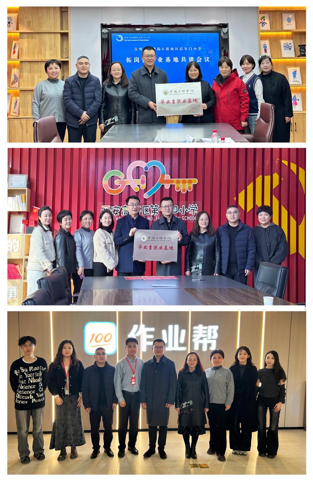 为搭建校企协同育人平台,拓宽毕业生就业渠道,11月12日,教育学院党委书记郝鑫、院长马多秀一行5人前往西安市新城区后宰门小学教育集团、西安高新区第十四小学、作业帮教育科技(北京)有限公司西安分公司开展访企拓岗活动。