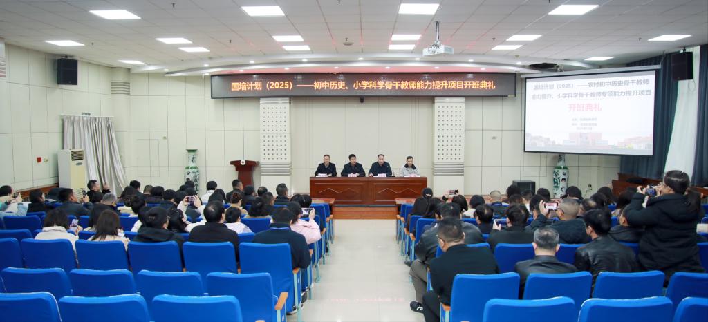 12月2日上午,由陕西省教育厅主办、bat365承办的“国培计划(2025)”——农村初中历史骨干教师能力提升、小学科学骨干教师专项能力提升项目开班典礼在bat365木铎厅举行。副校长冯飞龙出席开班典礼并讲话。开班典礼由继续教育学院院长韩星明主持。