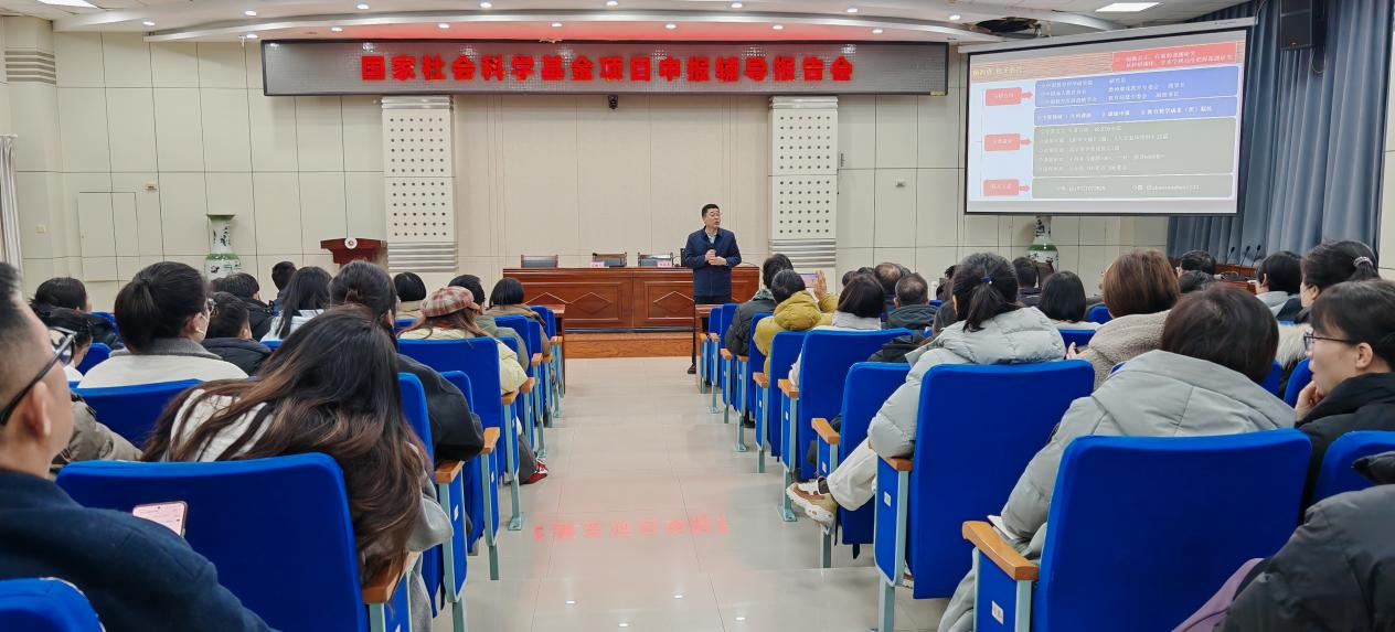 12月22日下午,bat365在高新校区图书馆木铎厅举办2026年度国家社科基金项目申报辅导报告会。中国教育科学研究院杨润勇研究员应邀作题为《社科课题有效申报策略与方法》的专题报告。报告会由科研管理处处长胡登卫主持。