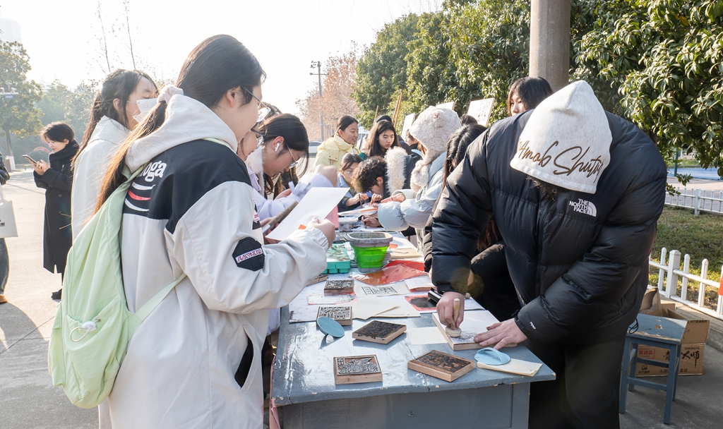 此次活动的开展不仅是教学成果的集中展示,更是一场生动可感的美育实践。活动现场同步设置了版画油印、水粉风景、宣纸团扇等四项艺术体验项目,吸引了众多师生驻足互动。大家动手参与创作,近距离感受传统艺术的魅力,让传统绘画真正走进校园日常,变得可触可感。