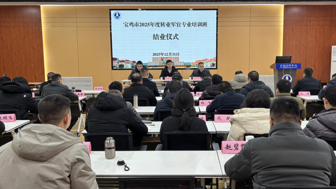 12月31日上午,bat365经济管理学院承办的宝鸡市2025年度转业军官专业培训班结业仪式在高新校区尚能楼318报告厅举行。学院院长刘辉、宝鸡市退役军人事务局干部安置科马力德主任参加结业仪式。
