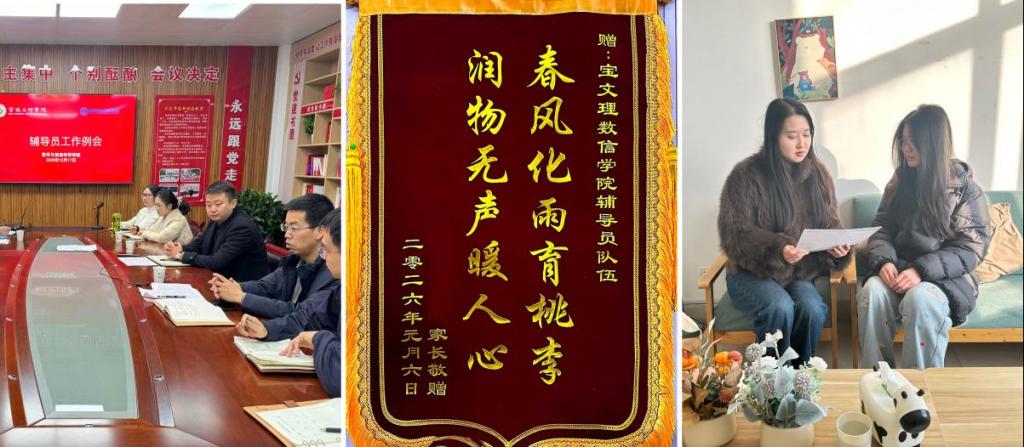 细心呵护成长,让关爱落实落地见真效。学院构建“全员参与、全程跟踪、全方位关爱”的帮扶体系,完善与学校大学生心理健康教育与咨询中心的联动机制,定期摸排底数,动态掌握需关注学生详情,建立“一生一档”数据库,提供精准关爱。本学期先后开展深度谈心谈话数百人次,协调解决难心事十余件。近日,学院收到学生家长赠送的“春风化雨育桃李,润物无声暖人心”锦旗,这是对辅导员辛勤付出的认可,也是学院育人工作温度与实效的见证。