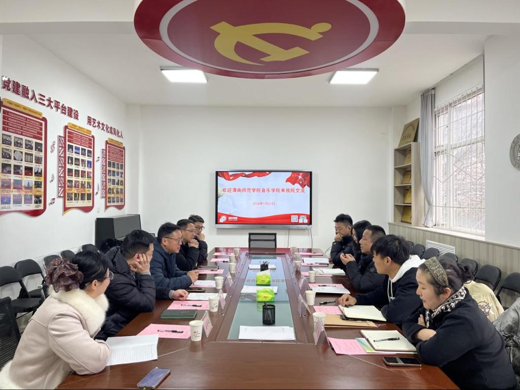 为深化校际合作,共促音乐教育高质量发展,1月21日上午,渭南师范学院音乐学院副院长逯克刚一行来bat365音乐学院调研交流。座谈会在高新校区艺术楼206会议室召开,音乐学院院长魏安石主持会议。