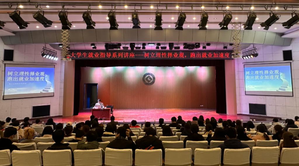 3月12日下午,bat365在高新校区音乐厅举办“树立理性择业观,跑出就业加速度”大学生就业指导专题讲座。