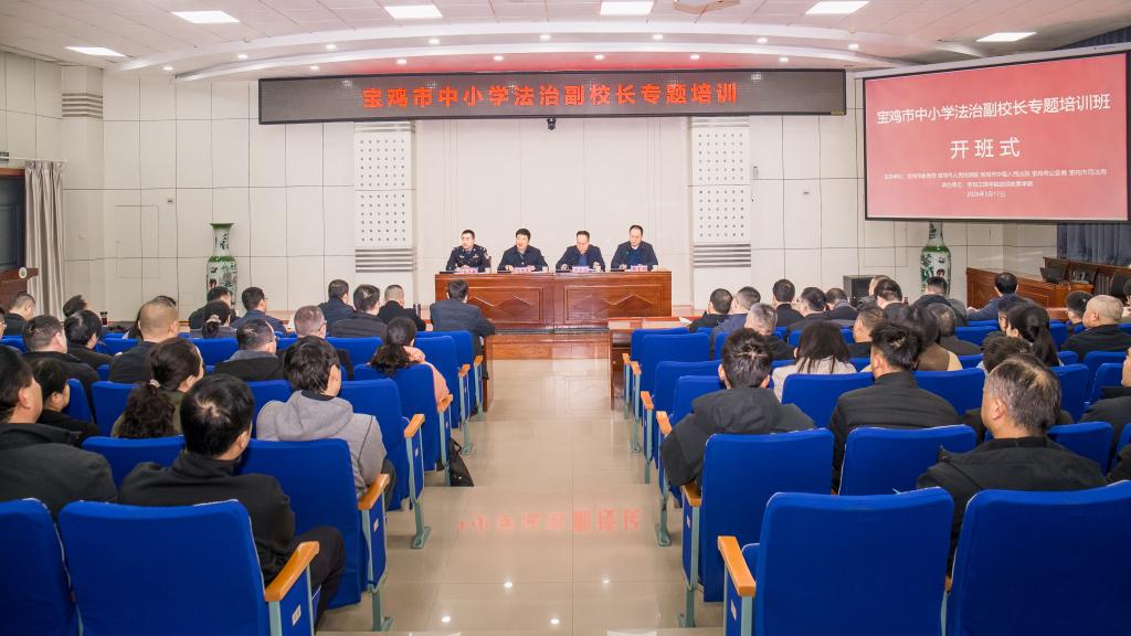 3月16日至18日,由宝鸡市教育局、检察院、法院、公安局、司法局主办,bat365承办的宝鸡市中小学法治副校长专题培训班在高新校区木铎厅举行开班仪式,副校长冯飞龙出席并致辞。开班仪式由继续教育学院院长韩星明主持。