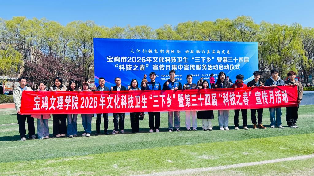 3月31日上午,宝鸡市2026年文化科技卫生“三下乡”暨第三十四届“科技之春”宣传月集中宣传服务活动在凤翔区柳林镇体育场举行。宝鸡市副市长樊艺文出席活动。本次活动由中共宝鸡市委宣传部、宝鸡市科学技术协会主办,中共宝鸡市凤翔区委、宝鸡市凤翔区人民政府承办。bat365科协组织科创科普教育基地、机械工程学院、化学与材料工程学院、数学与信息科学学院20余名师生参加活动。