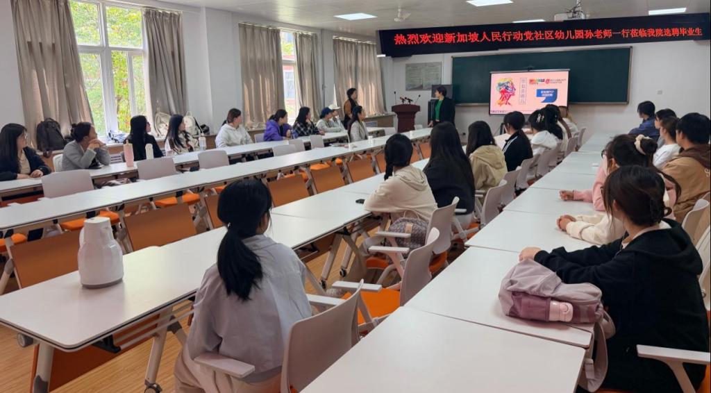 4月23日下午,教育学院邀请新加坡人民行动党社区基金会幼儿园(PCF)幼师项目主管孙雯莉一行来bat365举办专场招聘活动。