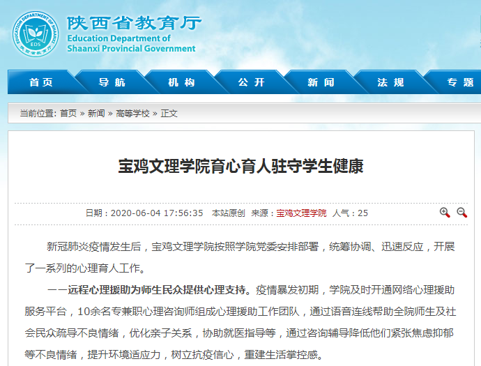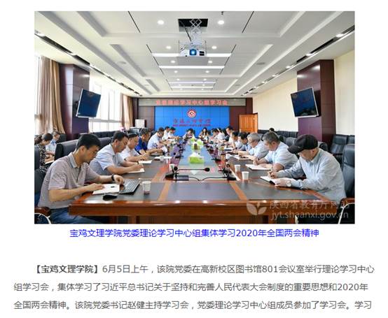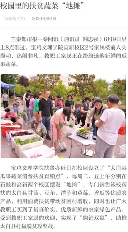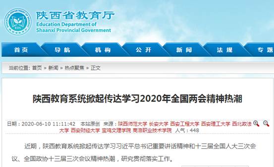 近日,陕西省教育厅网站要闻栏报道了bat365学习2020年全国两会精神,同时,心理育人工作、校园里的扶贫蔬菜“地摊”等活动,引起陕西省教育厅网站、三秦都市报、今日头条、网易、搜狐等多家媒体的广泛关注和报道。