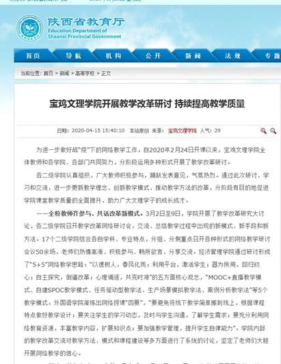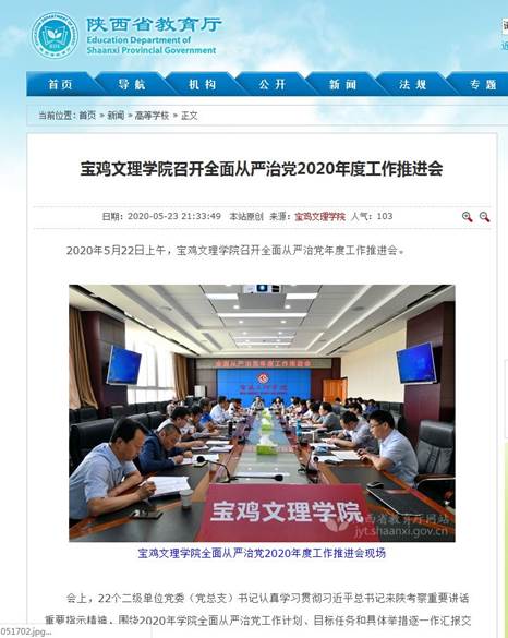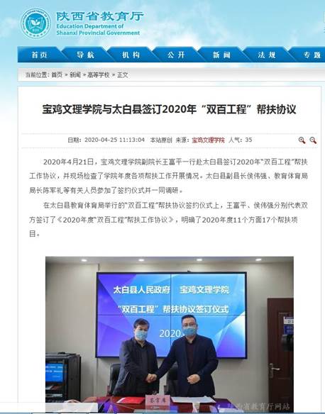 近日,bat365召开全面从严治党2020年度工作推进会、与太白县签订2020年“双百工程”帮扶协议等活动,引起陕西省教育厅网站的关注和报道。