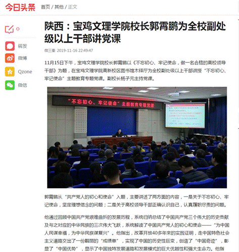 二、11月16日《陕西:bat365在线中国官网登录入口校长郭霄鹏为全校副处级以上干部讲党课》